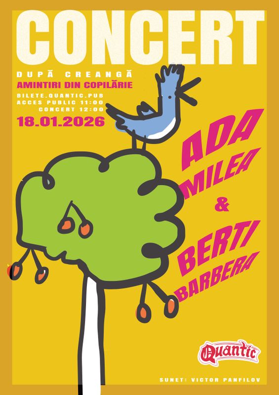 Ada Milea & Berti Barbera: Amintiri Din Copilărie după Creangă Sunday, 18 January 2026 Quantic, București Ada Milea Berti Barbera All Concerts Search Google For event youtube • video ID: 1udTtbQPRf8click image to load player Photos amintiri-1.jpg 0.17MB amintiri-2.jpg 0.18MB
